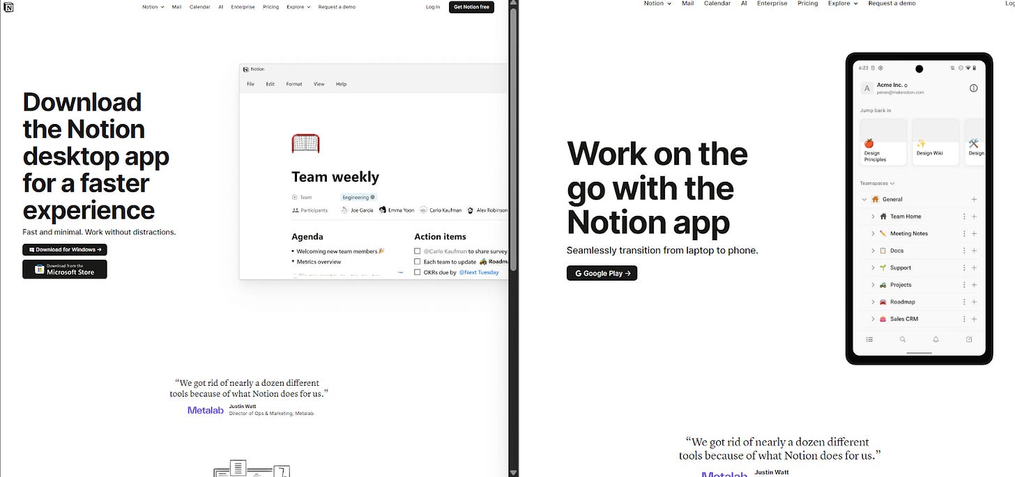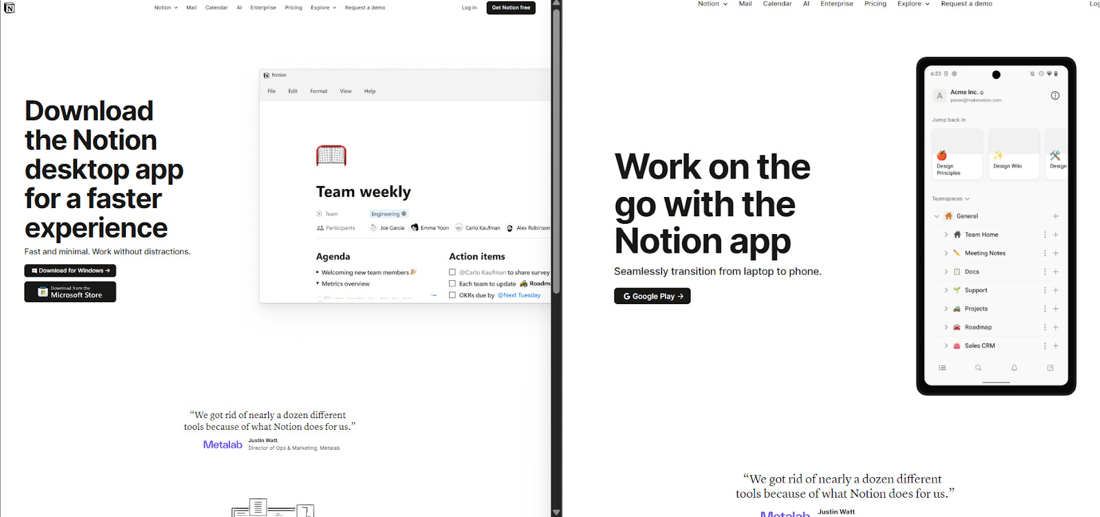 And this is the problem Notion solved very early on: Trying to be on as many platforms as possible so that anyone and everyone can use the product regardless of the device they use. This is why Notion has got the web app, iOS app, Android app, etc. Notion wants you to use the product the way you want, wherever you want, and however you want.