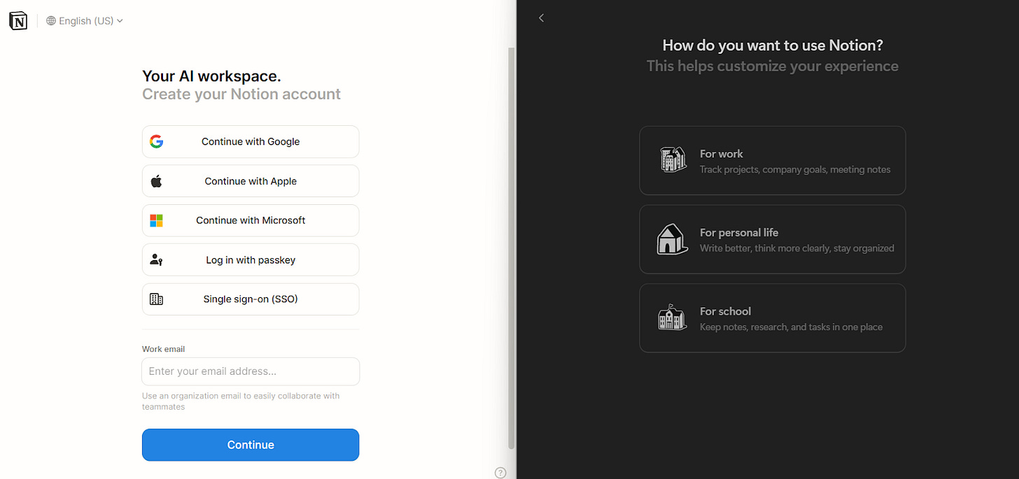 Creating an account and onboarding on Notion is so simple, you won’t believe it.
