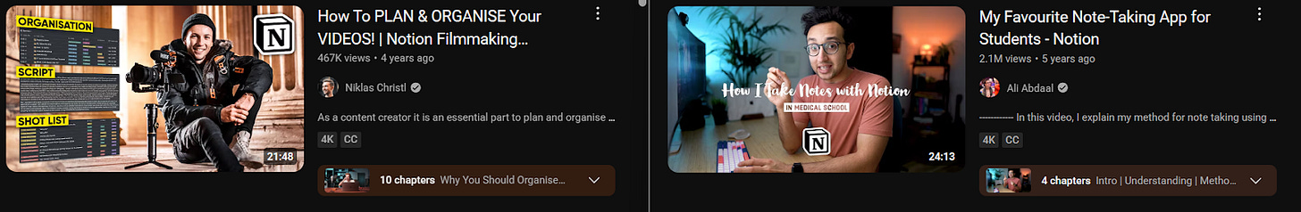 For example, these two videos are sponsored by Notion. Both of these YouTubers have hundreds of thousands of subscribers on YouTube, guess how much Notion would’ve paid to these two YouTubers just to make these two videos? I mean A LOT.