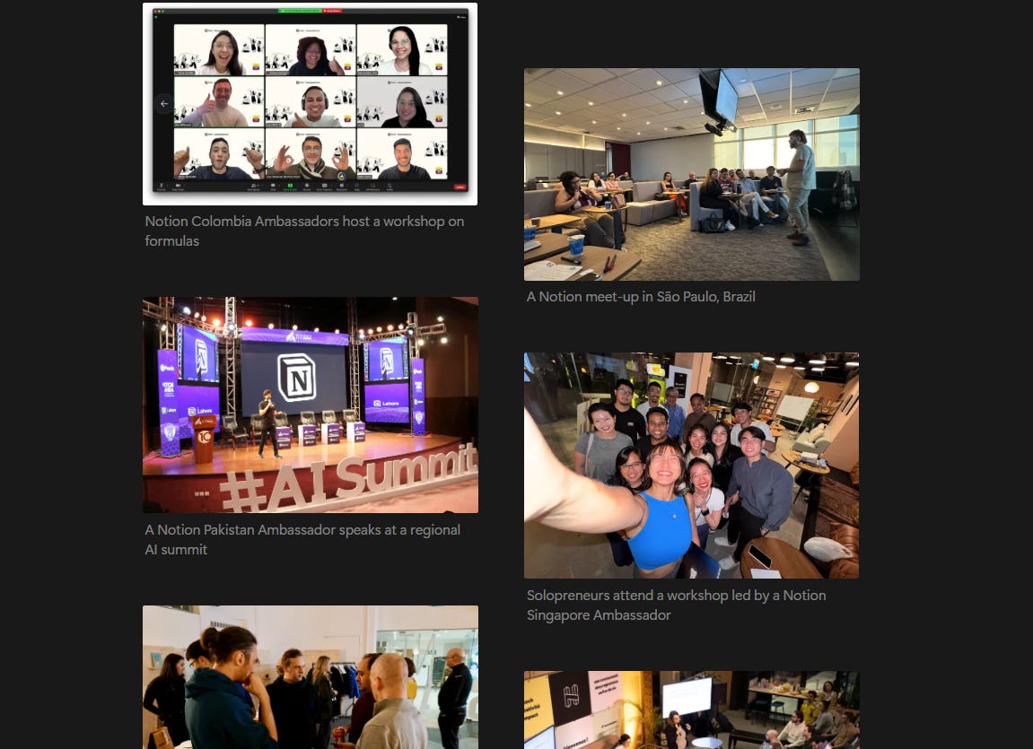 Remember earlier I talked about Notion brand ambassadors? Now one of the important things they do for Notion is that they regularly host meetups and workshops online or offline. And I do think this is one of the most powerful marketing strategies to attract people who feel connected to Notion.