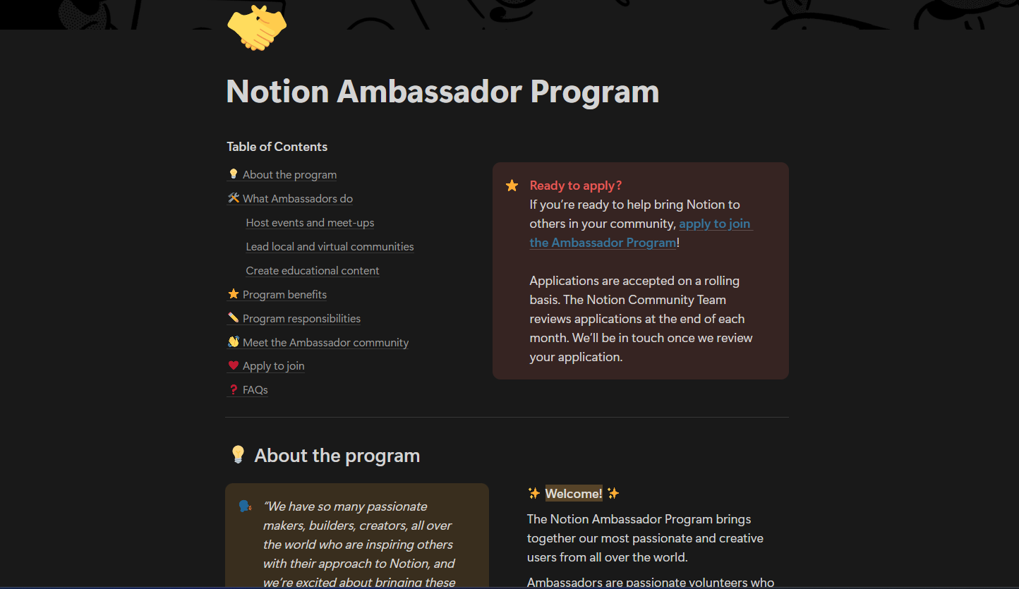 However, one doesn’t necessarily need to be a Notion brand ambassador to host meetups and workshops, as long as you know about the product, you can teach it to others, share your ideas with others, and expand your network in your own little “Notion” world.