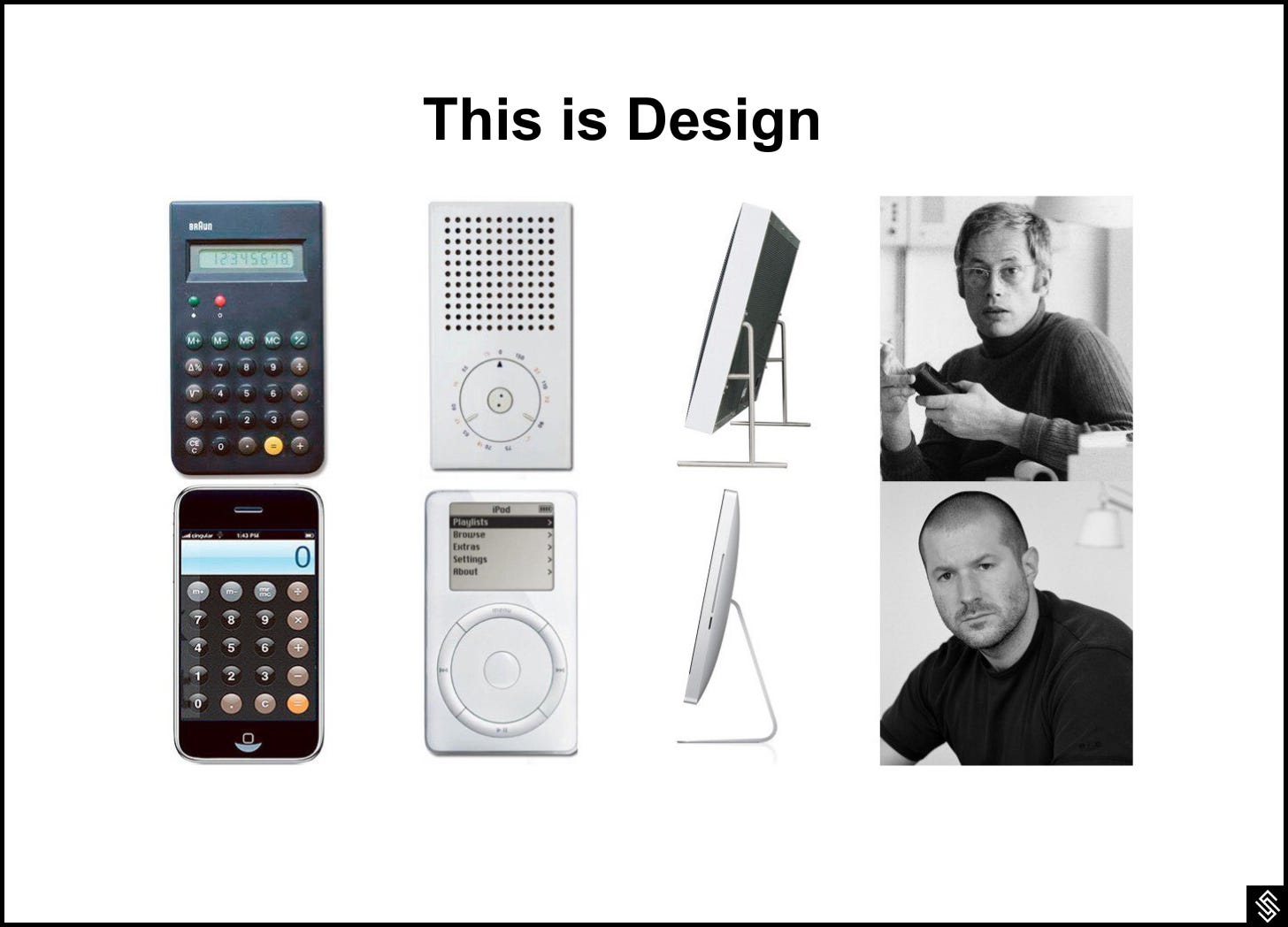 There are countless tactical tips on how to design well. One can learn all about pacing, repetition, shape, contrast, etc., anywhere online. But the following isn’t about that. Rather, I discuss the philosophical, more like framework/principles that guide the tactical design strategy—that’s what I’m going after here. These principles or wisdoms are not mine, rather they come from the greatest designers like Dieter Rams, Jony Ive, and entrepreneurs like Paul Graham.