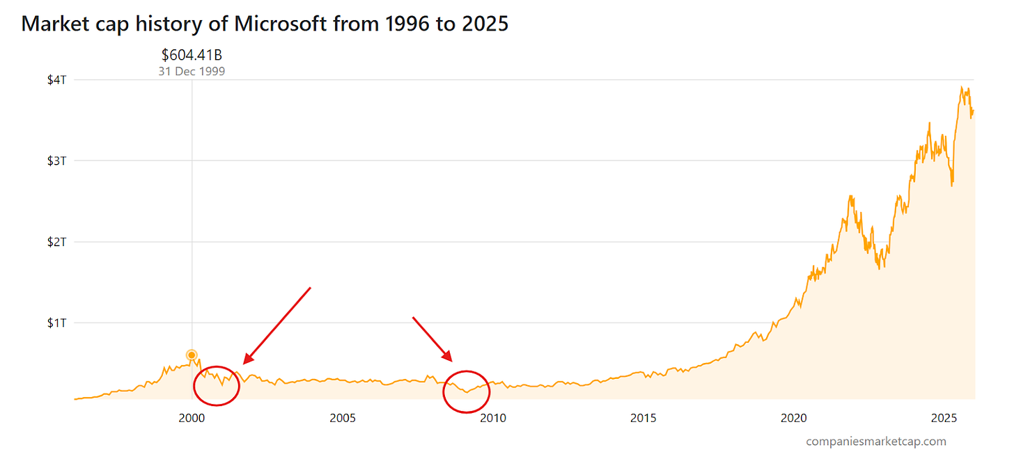 You may think that Microsoft has had a smooth ride, but the reality is, the company’s journey from the early 2000s to the late 2000s was not very good. However, Microsoft did fairly well prior to 2000—dominated the PC market, crushed Netscape, went public, etc.