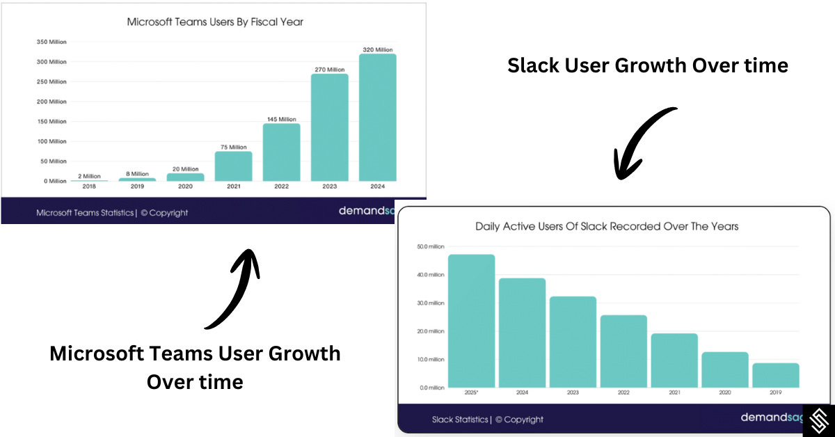 Why is it that Microsoft Teams has over 320 million monthly active users, whereas Slack, around 80 million monthly active users? The answer is simple: It’s nothing but the power of great distribution. The sole reason Microsoft Teams has 4 times the Slack users is that Microsoft has a massive distribution reach, bundling and deeply integrating Teams into its 365 Office Suite and across the platform—in Microsoft’s deep ecosystem.